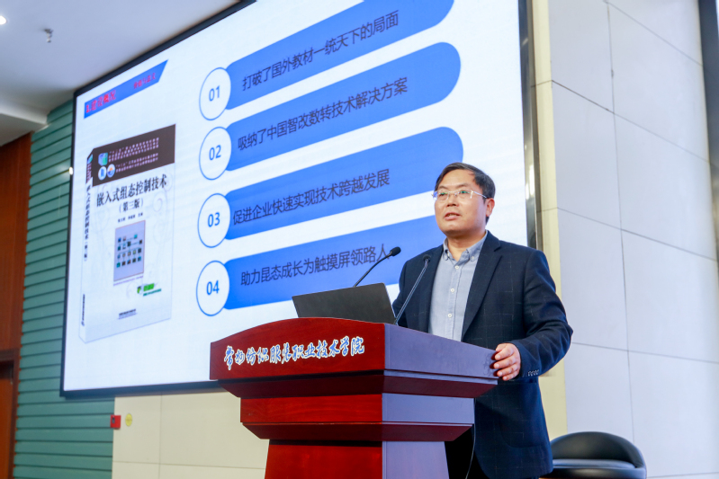 随后,他以《嵌入式组态控制技术》第四版的修订过程为例,从教材项目化选题、内容的选择、结构模块化的编排、融入企业项目资源、学生技能大赛资源建设等角度,系统地介绍了项目化设计的方法。他强调:一本有特色的好教材,一定是植根中国大地,思想先进,具有正确价值导向、学术导向和职业导向的教材;教材能对接职业标准,服务国家重大战略或区域经济发展,解决企业岗位实际需求;教材以项目引领、能力递进的方式编排结构,融入新知识、新技术、新工艺、新规范等“四新”内容,配套大量数字化资源;教材装帧美观大方,新颖活泼,能激发高职学生学习兴趣;教材融入现代职业教育教学的方法,适合高职学生项目学习、案例学习、模块化学习,起到示范引领作用。