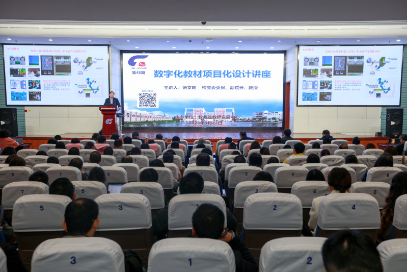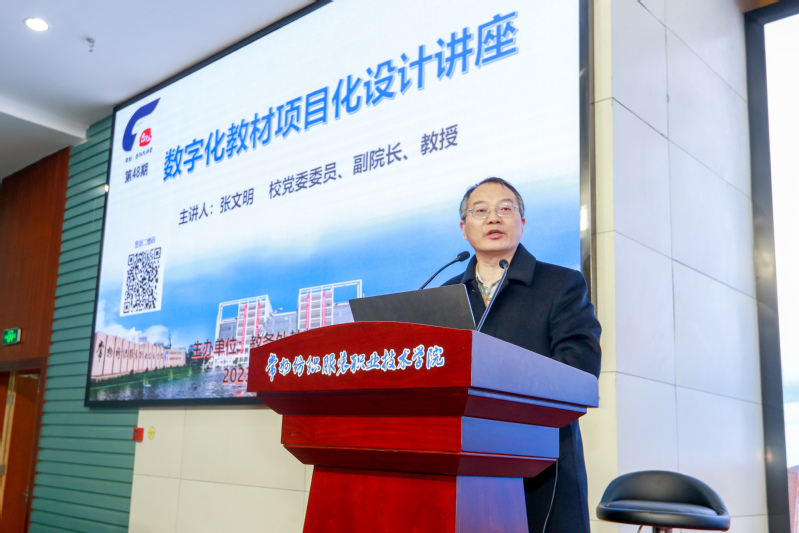 为认真贯彻落实习近平总书记关于深入实施科教兴国和数字中国的核心要义,大力推进教育数字化战略行动,根据省教育厅《关于大力推进高校教学数字化工作的意见》文件精神及深化“三教”改革的综合要求,进一步提升教师数字化教材的编写能力,3月22日下午,教务处邀请校党委委员、副院长张文明教授作了题为“数字化教材项目化设计”的讲座。本次讲座为杏坛大讲堂第四十八期培训,由教务处处长夏冬主持,二级学院院长、副院长、专任教师等280余人参加了本次培训。