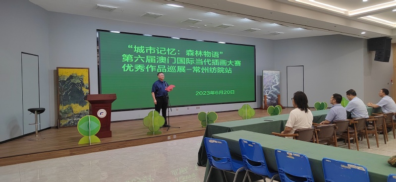 6月20日,“城市记忆:森林物语”澳门国际当代插画展在我校领秀展厅展出。本次展览是在常州西太湖美术馆展览的基础上来我校展出,出席展览开幕式的领导和嘉宾有:党委委员、副院长张文明,党委委员、宣传部长夏斌,校团委书记朱鹏,学工处副处长顾加强,创意学院副院长何卫平,以及师生代表50多人,活动由文化传承与创新中心主任顾明智教授主持。