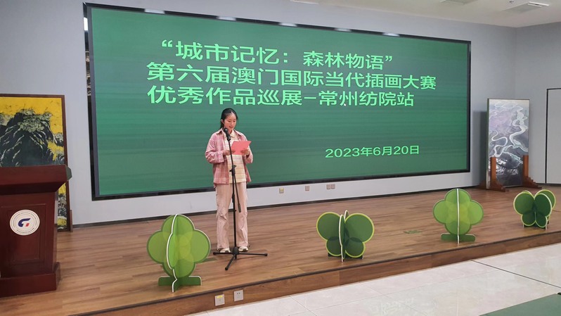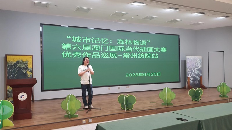 首先教师代表何卫平发言。他表示澳门1999年回归祖国,已有24年,今天的展览以“城市记忆:森林物语”为主题意义非凡,展览通过插画的方式引导人们思考我们如何建设我们的家园。本次展览由中华文化产业促进会发起,面向全球设计师、艺术家和有创意的人士,通过展览激发创作灵感,增进相互之间的交流有沟通。作品因迥异的创作背景呈现出十分多元的面貌,非常值得一看。