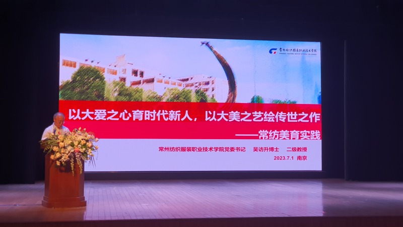 吴书记报告的题目是:“以大爱之心育时代新人,以大美之艺绘传世之作---常纺美育实践”。吴书记从“何为美育?为何美育?如何美育?美育如何?”四个方面系统阐述美育的内涵要素和功能作用,以及我校在美育方面的具体做法与实践探索,包括:顶层设计、组织架构、制度建设、课程体系、模式创新、美育实践、师资团队、教材建设、场馆建设、以及全国职业院校美育联盟大会、美育专家论坛等方面所做的积极探索和取得的成就。报告思路清晰、层次分明、案例丰富、内容详实,引得与会者纷纷举机拍摄,掌声不断。这是我校继绍兴会议(第八届高职人文素养高级研讨会)之后的又一次完美展现。